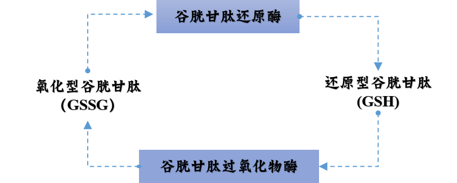 谷胱甘肽还原酶(Glutathione Reductase, GR)是一种黄素酶,广泛存在于人体心肝肾、红细胞、单核巨噬细胞等组织细胞内。其主要的生理功能是催化氧化型谷胱甘肽(GSSG)变成还原型谷胱甘肽(GSH),GSH可防止血红蛋白的氧化分解、维持巯基蛋白的活性、保证巯基蛋白的还原性及细胞的完整性。GR缺失会使细胞对氧化剂和抗生素更为敏感。