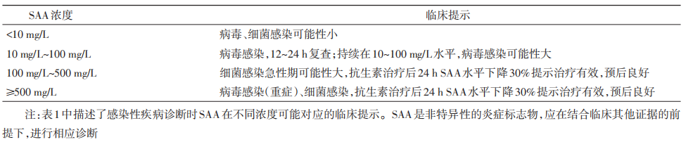SAA作为血清学炎症标志物,在机体急性感染过程中发挥重要作用,可根据其升高的程度或与其他实验室指标联合运用,判断感染性质,是一个灵敏的指标。