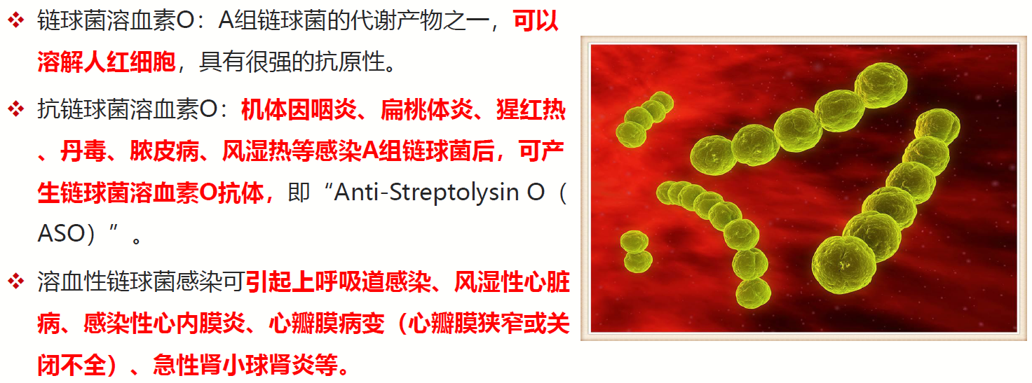 ASO是抗溶血性链球菌素O的一个简称,是A族溶血性链球菌的重要代谢产物之一。风湿性关节炎与A组乙型溶血性链球菌感染有关,检测ASO能够区分类风湿和风湿性关节炎,类风湿关节炎不导致ASO阳性。